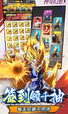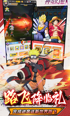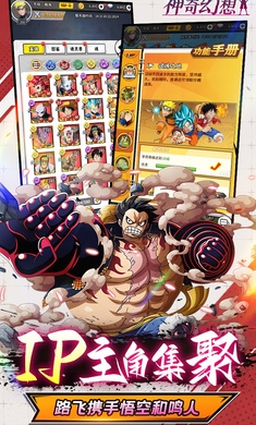 《神奇幻想》0.1折经典IP梦幻联动,海贼与龙珠火影联动!上线送UR英雄福利自选,充值永久0.1折!IP主角热血集聚,路飞携手悟空和鸣人! 路飞降临,完成进度送新世界路飞。还有七日目标送超赛神悟空。更有累计签到送千抽,每天招募不用停。经典动漫极致还原,超百位英雄,佛系挂机休闲护肝,挂机开箱永不停歇!