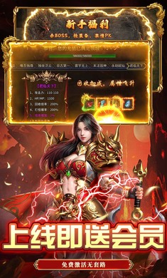 1.创角即送拾取小精灵,绝版称号。 2.七日登录送648元现金红包。 3.完成七日成就获取大量材料道具。 4.在线可获取海量元宝和材料。 5.顶级赞助免费赠送。 6.每日每周活跃可获取海量元宝灵符。 7.个人BOSS掉落极品神装。