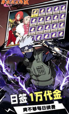 1、首续充值0.05折,充值比例1:10 2、上线赠送10万代金券,神话忍者自选*6 3、每日签到无门槛赠送2万代金券,特权、首充都可参与 4、创新充值卡玩法,附送大量忍币,高价值道具尽情兑换 5、开服签到,强力忍者、战力道具拿到手软